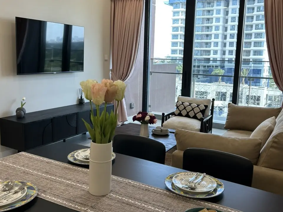 1区と2区の間を流れるサイゴン川沿いに位置し、2022年4月開通の第2トゥティエム橋脇に建設する築浅コンドミニアム物件「The River」です。同橋の開通により、1区までのアクセスが改善され、日本人街レタントン通りまでは車で数分の距離となりました。SAIGON川ビュー越しの1区ビル群の景色が何とも言えない優越を感じさせる物件です。